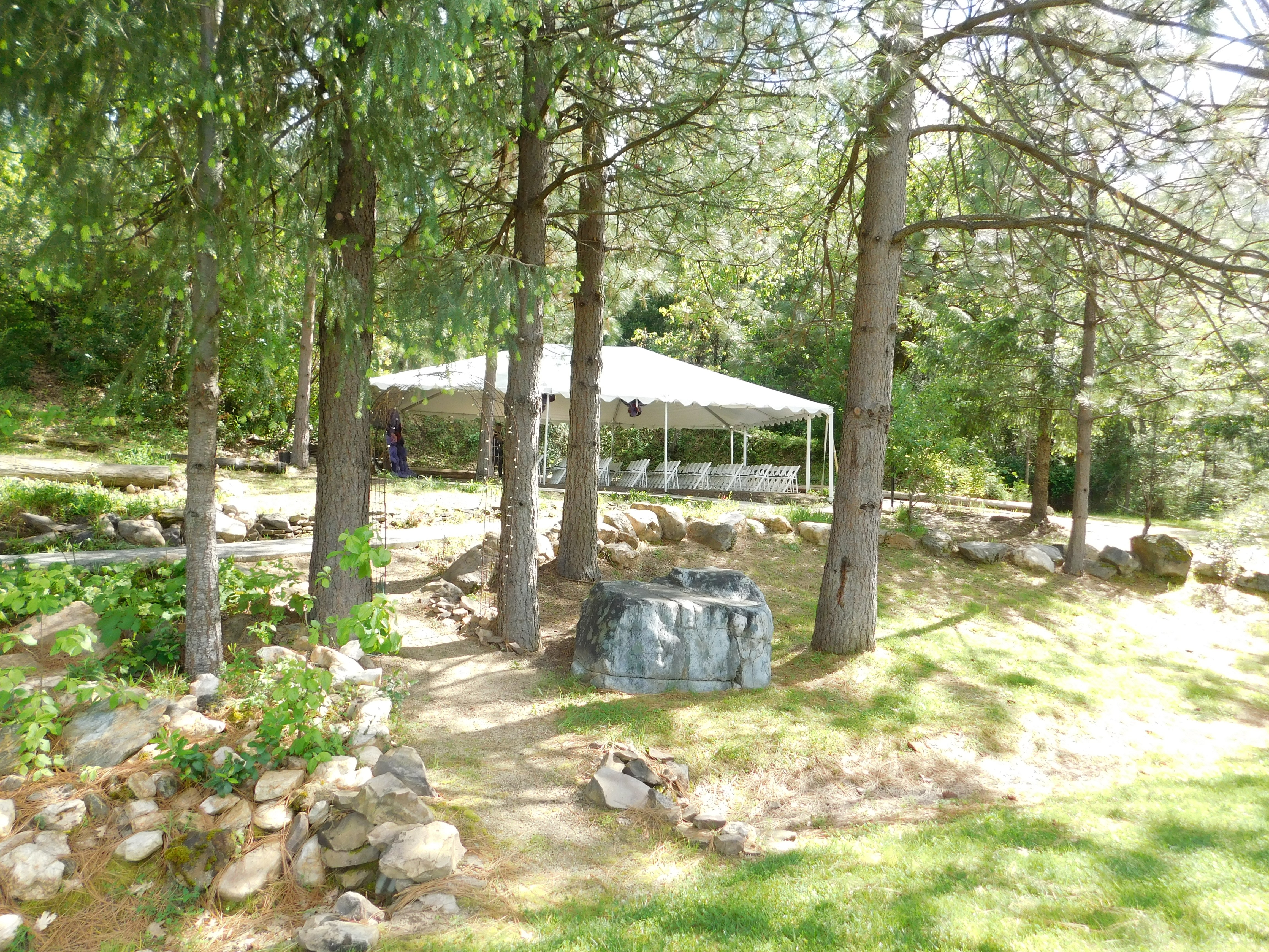 Our pavilion tent seats up to 200 people and is surrounded by lawn where umbrella tables can almost double the seating capacity. A ceremony canopy and catering tent add to the covered area.